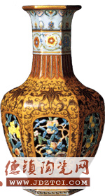 中國陶瓷工藝一直處于世界領(lǐng)先地位,至清朝乾隆時(shí)期達(dá)到歷史頂峰。此時(shí)的陶瓷制人窮極工巧、品種翻新,許多品種前無古人后無來者。這件外粉彩內(nèi)青花鏤空六方套瓶即為這一時(shí)期的登峰造極之作。