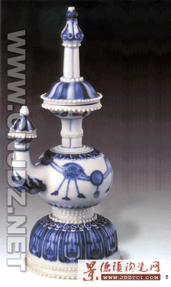這時(shí)流行的奇特挺拔之多穆壺和賁把壺,乃康熙時(shí)期中原地區(qū)與邊疆各族人民的頻繁接觸中,制瓷匠師為適應(yīng)民族地區(qū)的風(fēng)俗和宗教需要所燒制的器物。中原和邊疆各族人民在器物造型上的互相滲透變異,體現(xiàn)了一種文化交流,是我國(guó)歷史上第三次民族大融合在制瓷藝術(shù)中的反映。