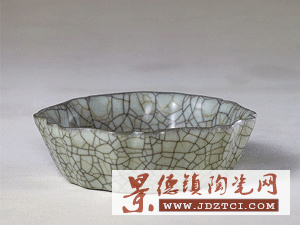 哥窯葵花洗,高3.5cm,口徑12cm,足徑8.8cm。