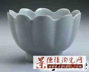 汝窯蓮花式溫碗 以蓮花或蓮瓣作為器物之紋飾及造型,隨佛教之傳入而盛行,爾后更取其出泥不染之習(xí)性,寓意廉潔,廣為各類(lèi)器所采用。本器狀似未盛開(kāi)蓮花,線條溫柔婉約,高雅清麗。原器應(yīng)與一執(zhí)壺配套,為一溫酒用器,晚唐至宋所常見(jiàn)。 汝窯曾為宮中用器,因采覆燒的方式,故口有缺陷,因而有「宮中命汝州燒造青瓷」之舉,汝窯之入選,支燒滿(mǎn)釉應(yīng)是原因之一。支燒另一用處為防止器底塌陷,汝窯所用支釘細(xì)小,所留釘痕狀似芝麻,器底五支釘痕即是,也就是俗稱(chēng)的「芝麻釘」。釉面細(xì)碎紋路,更有「蟹爪痕」之美名。 蓮花溫碗,以其典雅造型,溫柔不透明釉色,在傳世不多之汝窯器中,更顯珍貴。