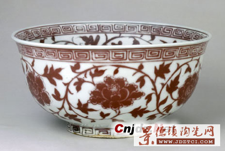 此碗紋飾活潑明快,紅色較艷,無論造型或紋飾構(gòu)圖都具有鮮明的時(shí)代風(fēng)格,為元代釉里紅瓷器的代表作品。