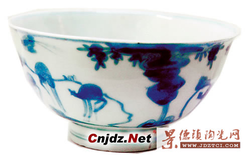 這類粗瓷碗與其他器形的民窯青花粗瓷一樣,雖然瓷胎無法與官窯精品相比,但它們的紋飾卻不同凡響,是民窯畫工開拓出的與官窯瓷繪完全不同的藝術(shù)風(fēng)格。它簡練豪放,卻并不簡單草率,它率性天真,卻并不幼稚粗疏,畫工們將節(jié)約工料成本與藝術(shù)追求很好地結(jié)合起來,找到并創(chuàng)造出嶄新的藝術(shù)語言,達(dá)到了極高的審美境界。