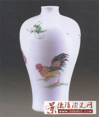 > 清雍正景德鎮(zhèn)窯粉彩雙雞紋圖梅瓶