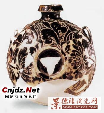 西夏 黑釉剔刻花瓷扁壺 高26厘米