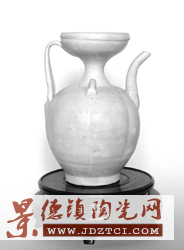 當時的景德鎮(zhèn)有窯三百多口,可謂是“村村陶埏,處處窯火”,一派興旺繁榮景象。當時的朝廷特派官員到此“以奉御董造”,即確定此處為皇家御窯口,景德鎮(zhèn)也為此名聲大震,成為中國瓷都。此件影青瓜棱執(zhí)壺系出自景德鎮(zhèn)的湖田窯,這也是當時鎮(zhèn)上最多的窯場,材質(zhì)系高嶺土。影青瓷又稱青白釉瓷,好的青白瓷具有:“薄如紙、聲如磬、青如天、明如鏡”的特點。北宋時的青白瓷泛米黃色,南宋后的青白瓷隨著釉質(zhì)工藝的改進及燒制火候的調(diào)節(jié),瓷釉洇潤出隱隱的湖綠色,勻凈晶瑩而清醇華滋,色澤怡人而高雅幽逸,十分養(yǎng)眼。此件影青瓜棱執(zhí)壺就具有此種特點,胎質(zhì)細膩而堅密,釉色純凈而瑩然,特別是經(jīng)過千年地氣的陶冶及漫長歲月的摩挲,壺壁上已泛出一層溫淳的包漿,彌散出悠悠的滄桑之氣。
