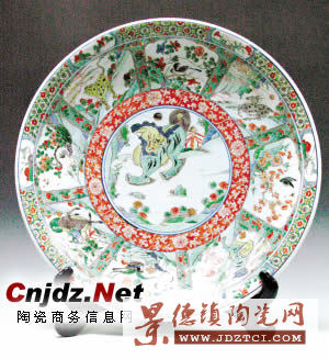 清康熙 五彩開(kāi)光獅子紋大盤(pán)