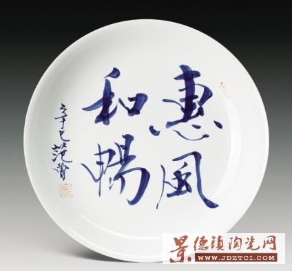 范曾 書"惠風(fēng)和暢"青花盤 成交價(jià):8.96萬元 北京榮寶2008秋拍品