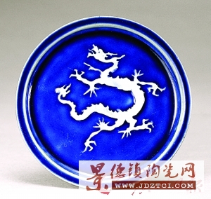 元 藍釉白龍紋盤
