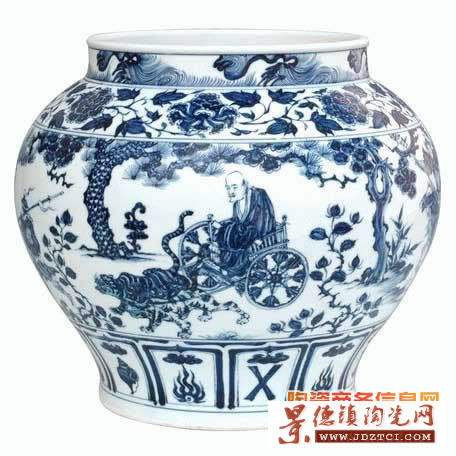 元代鬼谷子下山青花大罐, 在2005年倫敦佳士得以破紀(jì)錄1400萬鎊成交,是歷史上第一只破億港幣和人民幣的中國瓷器。