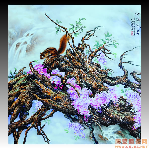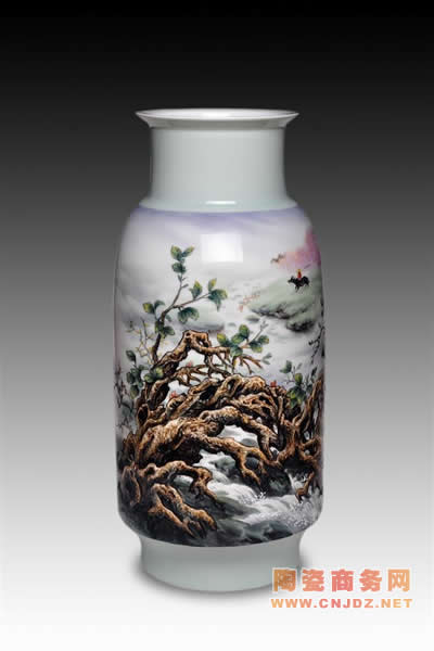 比如徐雪勇。在他那棱角分明的臉上有著秋的冷峻又有著秋的飄逸。那份氣定神閑、不疾不徐的風(fēng)度,讓人很自然覺得他又像某種植物,比如他喜歡的樹根。內(nèi)斂、含蓄、深沉。他師古而又不泥古,將大自然的根雕藝術(shù)運用到陶瓷繪畫創(chuàng)作中,營造出一份自然真趣、古樸大氣的意境。