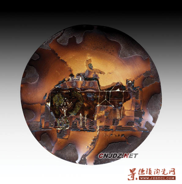 2012年,所有的耕耘,終于換來(lái)了收獲,在安徽省美術(shù)家協(xié)會(huì)和安徽省陶藝委舉辦的現(xiàn)代陶藝展上,朱墨的兩幅陶藝作品,高溫顏色釉瓷盤《黑鐵時(shí)代》,以幾乎天成的窯變效果,呈現(xiàn)出奇異的色彩和造型,來(lái)自中國(guó)陶藝委的評(píng)委白明、左正堯十分欣賞,評(píng)被為金獎(jiǎng)作品。