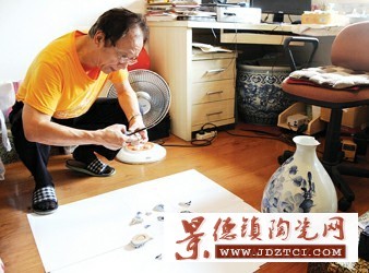 今年,正好是蔣道銀從事修復(fù)工作的第40個(gè)年頭。年近古稀的他卻沒(méi)有放下手中的修復(fù)工具,他家中有一個(gè)房間就是他的簡(jiǎn)易工作室,桌上擺滿數(shù)十個(gè)化學(xué)試劑瓶,地上有三四件剛剛完成或者正待修補(bǔ)的古陶瓷器件。妻子裴菊芳是他最得力的助手。有時(shí)候要把幾塊碎瓷擺放成型后粘合,蔣道銀兩只手不夠用,妻子就會(huì)來(lái)幫忙,除此以外,她還負(fù)責(zé)做好全部的后勤保障工作。