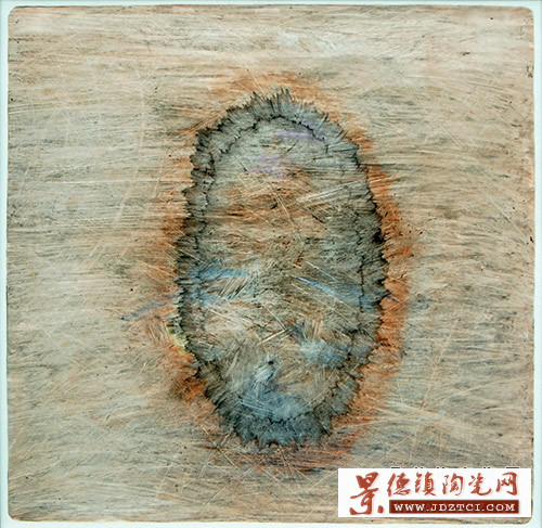 近期袁樂輝的作品越來越內(nèi)斂、平和、安靜,蝌蚪狀的精子取代了滾滾紅塵,他從生命本源開始思考,從精心的勾畫到任由顏料與調(diào)和油滲透,流動及筆觸漫不經(jīng)心的收拾,而且只選擇了單一顏色:黑。袁樂輝不再去刻意去表達什么,黑與灰,加上瓷器本身的白,最簡單的色彩構(gòu)成卻產(chǎn)生了奇異的效果。中國畫的意境在無意間在陶瓷上顯現(xiàn)。讓他的作品從具象變成了意象,即抽象又融入中國傳統(tǒng)文化的原素,但一如即往保持著他一慣的先鋒性和探索性。