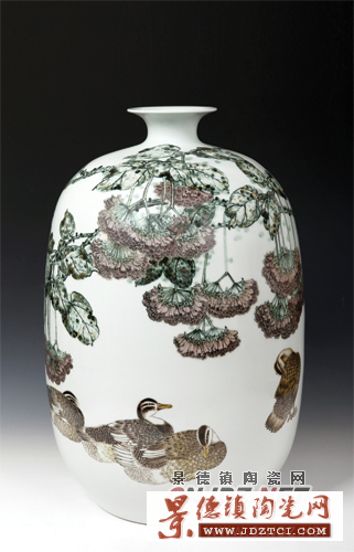 青花,集藍(lán)白之清純素雅;粉彩,淡妝濃抹總相宜,千百年來(lái),為世人珍愛(ài)。素胚勾勒,筆底流香,獨(dú)特的色彩魅力,筆鋒濃淡之間的物象變幻,承載著悠然的古意,寄托著獨(dú)特的審美情懷。王清麗的陶瓷工筆作品正是從傳統(tǒng)元素中走來(lái),運(yùn)宋人之寫(xiě)實(shí)造型筆墨,反映她眼底的盎然生機(jī)。畫(huà)面中的形象參造化天地之妙,都體現(xiàn)了與自然“神遇而跡化”的追求,繁密的構(gòu)圖與細(xì)膩的筆觸里,卻有一種清麗雅致又不失生動(dòng)的風(fēng)格。畫(huà)面中由內(nèi)而外的執(zhí)著、質(zhì)樸、沉靜、雅致,與清麗本人帶給我的感覺(jué)是一致的。