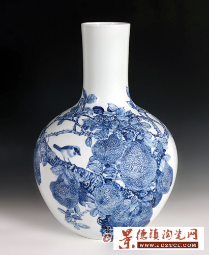 談及陶瓷創(chuàng)作,清麗直言不得不面臨一個(gè)問(wèn)題:畫(huà)畫(huà)得很好,但陶瓷卻不一定畫(huà)得好。工筆繪畫(huà)運(yùn)用在陶瓷材料之上,首先對(duì)于陶瓷媒介的掌握需要時(shí)間的摸索與積累,尤其是陶瓷花瓶的構(gòu)圖跟國(guó)畫(huà)宣紙的構(gòu)圖也是兩種不同的思維理念,得花心思去研究才行。尤其粉彩,從打料勾線到點(diǎn)染填色,工藝非常之繁復(fù)需要大量的實(shí)踐摸索。清麗的陶瓷作品中,可見(jiàn)她的匠心獨(dú)運(yùn),能看得出她對(duì)于筆底形象如何適應(yīng)陶瓷媒介的思索,尤其是在結(jié)合瓷器的器形,表現(xiàn)層次疏密的關(guān)系。青花斗彩《雨林之歌》,瓶肩部的物象的飽滿與瓶身下方留白的對(duì)比,打破橢圓型器形的凝重刻板,而顯得輕松明快。《大樹(shù)菠蘿》瓶頸的素潔與瓶身的繁密,滿而不塞,繁而不堵,形成典雅端莊又獨(dú)具個(gè)性的巧趣。在陶瓷媒介表現(xiàn)探索里兜兜轉(zhuǎn)轉(zhuǎn)之后, 清麗越來(lái)越自信找到自己的目標(biāo)和方向了,從她的畫(huà)面內(nèi)容中可以讀出她對(duì)于陶瓷繪畫(huà)表達(dá)已頗有心得。