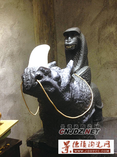 捕獵前的豹子、奔跑的豹子、靜坐的山魈、騎在犀牛身上的狒狒等,這些店內(nèi)擺放的雕塑作品很有特點(diǎn),造型、裝飾等表現(xiàn)手法,都與我們平時(shí)看到的傳統(tǒng)雕塑不同。這些充滿野性的兇猛動(dòng)物,被制作得栩栩如生,極具靈氣。這些作品的制作者是一名年輕的男子,他身著黑色的短袖,正氣定神閑的品著茶,玩著手機(jī)。
