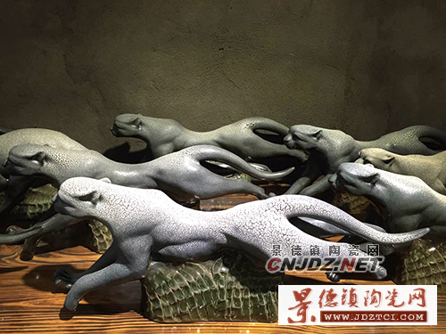 沿著店鋪一直向里走,記者被一只匍匐在桌面,極具動(dòng)態(tài)美感的“豹子”給嚇了一跳,抬頭一看,發(fā)現(xiàn)這家店并沒(méi)有名字,帶著好奇,記者走進(jìn)了店內(nèi)。水泥的墻面加上幾個(gè)木質(zhì)的展示柜,讓人覺(jué)得十分簡(jiǎn)陋。巧妙的是,這樣的裝修配上店主制作的一群“豹子”,仿佛讓人有一種置身原始山野的感覺(jué)。
