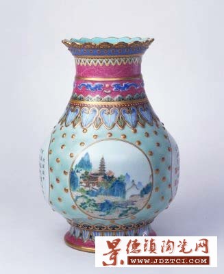 琺瑯彩開光山水詩句瓶,清乾隆,現(xiàn)藏于北京故宮博物院琺瑯彩開光山水詩句瓶,清乾隆,現(xiàn)藏于北京故宮博物院