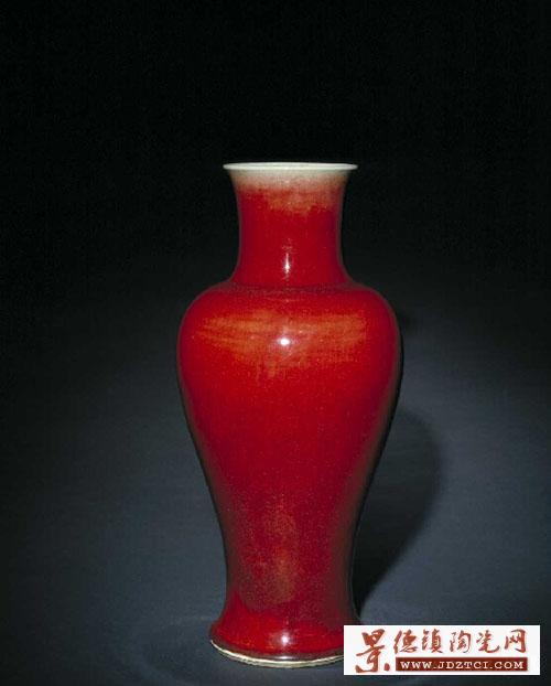 到明早期的永樂、宣德年間景德鎮(zhèn)窯才真正燒成通體鮮紅的高溫銅紅釉瓷器。可是到明代中期這種燒造技術(shù)就失傳了。直到200多年前的清代康熙朝,在郎窯中才又成功地燒制出高溫銅紅釉瓷器。