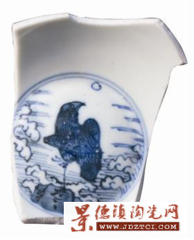 明代嘉靖前后,瓷器上出現(xiàn)了一個以鷹為主體的紋樣品種。此紋樣中,一只鷹以一足獨(dú)立于巨石之上;石下是一片遼闊的海洋;天空中有層層的云氣和一個太陽。細(xì)看鷹的姿勢,只見它高昂著腦袋,眼睛似乎在盯視太陽。這樣一幅圖,是要表達(dá)什么畫意呢?經(jīng)初步研究,我以為此圖是在表現(xiàn)當(dāng)時造反者的“豪邁”之氣!具體而言,與發(fā)生在正德年間的一次民間起義有關(guān)。