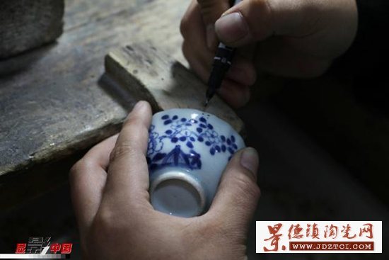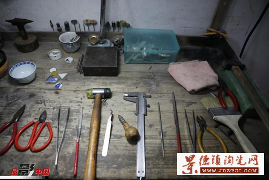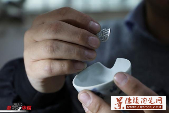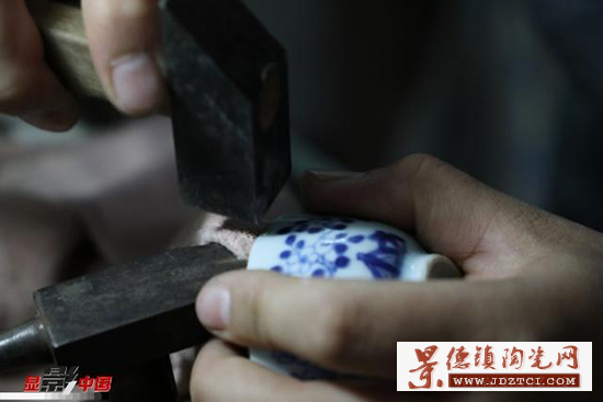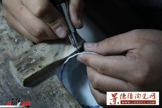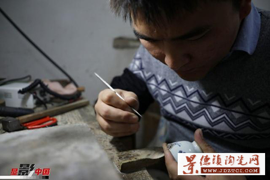 徐文華的鋦瓷手藝是從他爺爺?shù)臓敔斈禽厒鞒邢聛淼摹?5歲那年,性格安靜的徐文華跟隨家中長輩開始學(xué)習(xí)鋦瓷。他十年如一日,在工作臺(tái)前一坐就是一天,鋦瓷手藝在景德鎮(zhèn)也漸漸有了名氣,常有北京、重慶、深圳等地的客戶通過快遞把破損的瓷器寄給他修復(fù),經(jīng)他修復(fù)的瓷器有上千件。作為一名傳統(tǒng)手工藝領(lǐng)域的90后“新匠人”,鋦瓷的工藝、審美在他手上又有所創(chuàng)新發(fā)展。有裂紋的瓷器,一般采取鋦釘?shù)姆绞,徐文華要先用筆在瓷器上標(biāo)出鋦釘?shù)奈恢。定好位之后,再進(jìn)行打孔。俗話說“沒有金剛鉆,別攬瓷器活”指得就是鋦瓷過程中用金剛鉆給瓷器打孔。如今,鋦瓷大多采用機(jī)械鉆。