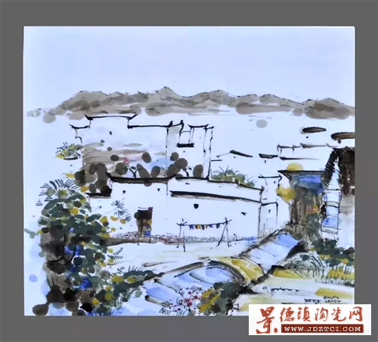煙雨江南,是個來了就舍不得走的地方。煙柳畫橋,橋上風(fēng)景如畫,乘舟采菱,橋下流水蛙鳴。外師造化,中得心源,自小生在鄱陽的她,手握畫筆,利用點(diǎn)與線勾勒出山水人家,將濃濃的故鄉(xiāng)情揉進(jìn)山水風(fēng)景里,當(dāng)真應(yīng)了那句“一切景語皆情語”。情之切,愛之深,作品才能打動人心。
