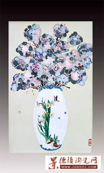 王小霞,主要從事江南水鄉(xiāng)、花卉的瓷板畫藝術(shù)創(chuàng)作。從小喜歡涂涂畫畫又熱愛陶瓷的她,懷著對瓷都的好奇和對藝術(shù)的憧憬,來到了令人心馳神往的景德鎮(zhèn)。這一來,沒曾想就扎了根,藝術(shù)的種子開始發(fā)芽,開花,結(jié)出碩果。在她的創(chuàng)作中,將釉下五彩和高溫顏色釉結(jié)合在一起,通過窯變技術(shù),讓作品呈現(xiàn)出結(jié)晶與渾然天成的色彩還原效果,遠(yuǎn)看淡雅脫俗,近看晶瑩剔透,美得動人心魄。作品的整體風(fēng)格簡約又不單調(diào),素雅又不空洞,生動傳神,清新自然,靈動可人,深受藏家的贊譽(yù)與鐘愛。