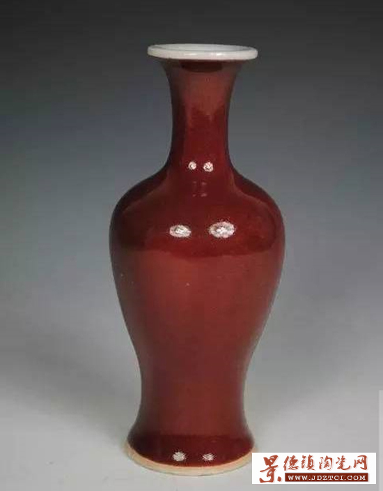豇豆紅是一種呈色多變的高溫顏色釉,是清康熙時(shí)的銅紅。釉中名貴品種之一。釉色淺紅,釉面多綠苔點(diǎn)。這種綠色苔點(diǎn) 本是燒成技術(shù)上的缺陷,但在渾然一體的淡紅中,摻雜點(diǎn)點(diǎn)綠 斑,反而顯得幽雅清淡,柔和悅目,給人美感,引人遐思。因此有“綠如春水初生日,紅似朝霞欲上時(shí)”之美譽(yù)。
