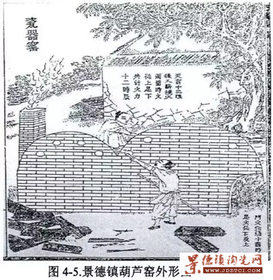 葫蘆窯為景德鎮(zhèn)特有的葫蘆形柴燒瓷窯,最早出現(xiàn)于元末明初,直到清初出現(xiàn)了蛋形窯(鎮(zhèn)窯)后才逐漸停止使用。明代宋應(yīng)星的《天工開(kāi)物》對(duì)景德鎮(zhèn)的葫蘆窯有專門的文字記載,并配有插圖。明代葫蘆窯兼?zhèn)淞怂卧獣r(shí)期龍窯和饅頭窯的優(yōu)點(diǎn),燒成技藝有了長(zhǎng)足的進(jìn)步,對(duì)整個(gè)明代景德鎮(zhèn)制瓷業(yè)發(fā)展和清代鎮(zhèn)窯的形成做出了杰出貢獻(xiàn)。