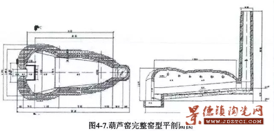 葫蘆窯的結(jié)構(gòu)早期跟龍窯相似,斜長(zhǎng)較龍窯短些,火膛較為深大,窯體左右兩壁外弧,窯壁近火膛出微微內(nèi)縮,尾部呈圓弧形且沒(méi)有龍窯常見(jiàn)的排煙孔等設(shè)施。
