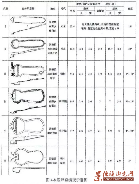 根據(jù)景德鎮(zhèn)窯址發(fā)掘報(bào)告,我們從元末到明朝中晚期出土的葫蘆窯能看出葫蘆窯窯型有一個(gè)演變過(guò)程。