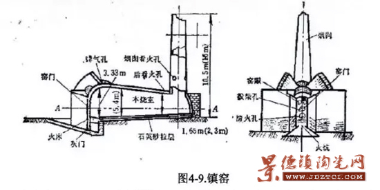 鎮(zhèn)窯的結(jié)構(gòu)是前部高而寬,后部低而窄緊接窯尾末端設(shè)有一與窯長(zhǎng)相等的煙囪,窯身兩側(cè)用窯磚圍成一護(hù)窯墻,與窯身之間有0.2-0.3m的空隙。作為空氣隔熱層,以減少內(nèi)熱損失,并緩沖薄壁窯墻和窯頂脹縮而引起的開(kāi)裂。蛋形窯有一個(gè)砌筑技術(shù)高超的薄壁煙囪,壁厚僅0.1-0.12m,上口截面在2米左右,煙囪斷面亦似蛋形,大頭方向指向窯前,囪壁前方垂直,后方向上收縮傾斜,頂部呈鋼筆尖形,尖端傾向窯頭。我國(guó)早在三百年前就能利用空隙隔熱層的方法砌磚,并能砌筑這樣高水平的煙囪,是窯爐史上了不起的的事情。明末清初,景德鎮(zhèn)能集我國(guó)歷代南北瓷器的大成,成就我國(guó)歷史上瓷器百花齊放的盛旺時(shí)代,是和這種窯分不開(kāi)的。