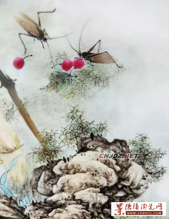 景德鎮(zhèn)的瓷繪種類無非山水、人物、翎毛(含動物和花鳥),畫花鳥者眾多,而善工兼寫者少,蔡昌鑒在其中,已經(jīng)算得上是佼佼者。他的花鳥瓷畫,無論是巨幅瓷板,還是小件瓷瓶都會帶有較明顯的“蔡氏”風格。從最初的重工粉彩,到之后的工筆粉彩,再到如今的工兼寫,風格的漸變間卻始終保有著構(gòu)圖的精巧,筆意的流暢和色彩的和諧,他用心所造的花鳥瓷畫世界可謂活色生香,已臻化境。