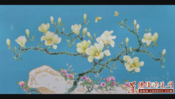 周?chē)?guó)生的白玉蘭作品被稱(chēng)為夢(mèng)系列,之所以這么定義,是因?yàn)榘子裉m被他賦予了很多精神內(nèi)涵:白玉蘭的冰清玉潔象征著人的品性高潔,藍(lán)釉地作為白玉蘭的背景,不僅能夠與白玉蘭形成強(qiáng)烈的色彩對(duì)比,更因?yàn)檫@種藍(lán)在周?chē)?guó)生心里代表的是天空和海洋,代表的是大自然的美好和清新,就像當(dāng)下社會(huì)所呼喚的風(fēng)清氣正一樣,因此,這也是多年來(lái)周?chē)?guó)生的白玉蘭作品一直保持藍(lán)釉地的原因。